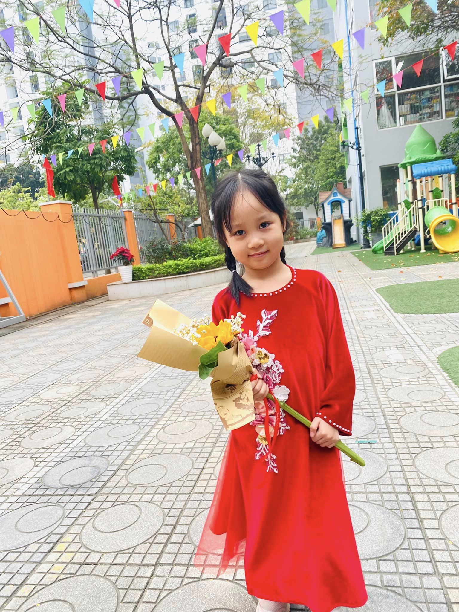 Ba mẹ cùng ngắm nhìn con trong tà áo dài dưới sân trường với nụ cười toả nắng nào