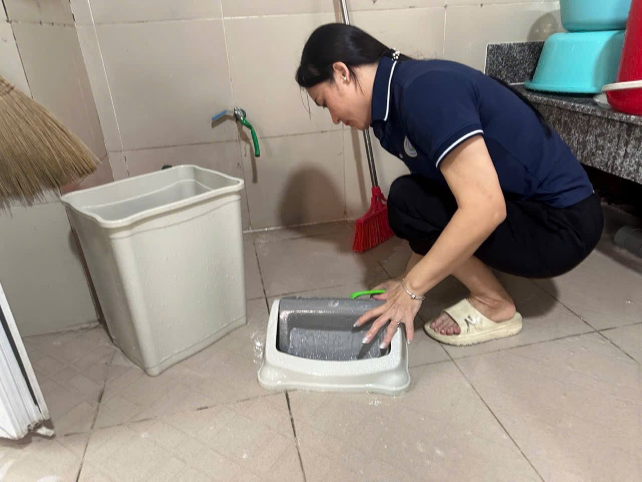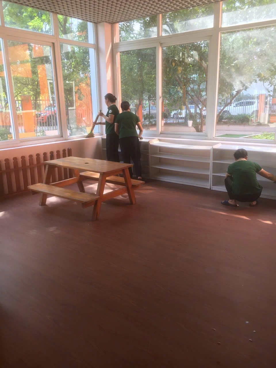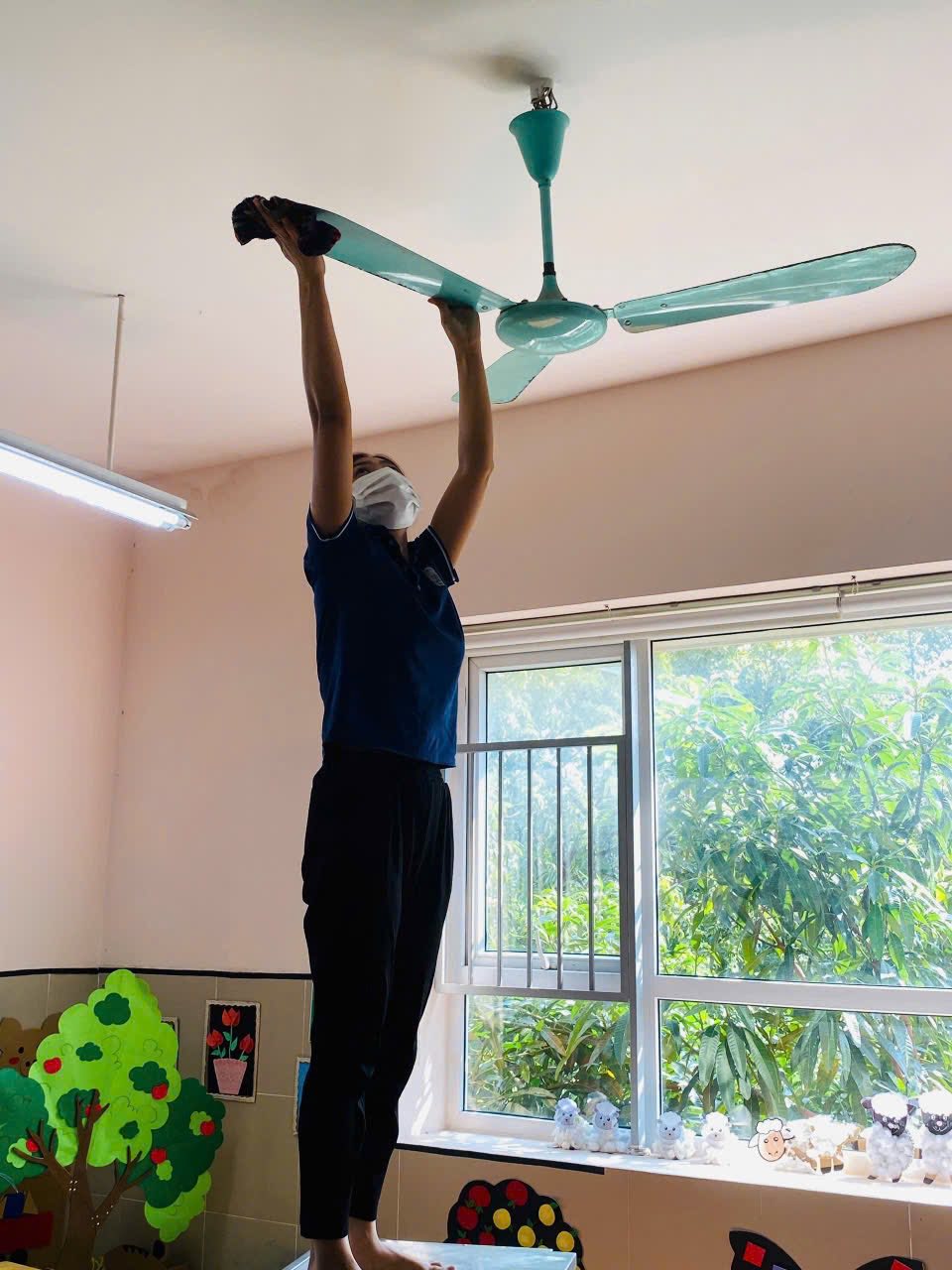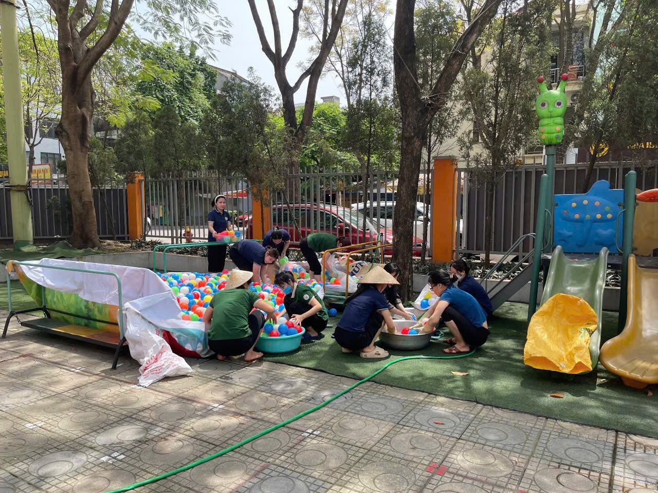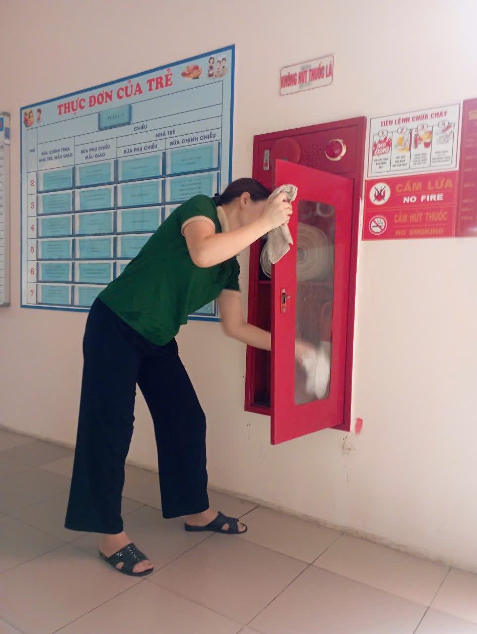 Từng bồn hoa được nâng niu, từng chiếc lá rơi được quét sạch, từng góc sân, lớp học, khu bếp và khu vui chơi chung của trẻ đều được chăm chút, lau dọn, sắp xếp gọn gàng bằng cả tấm lòng yêu nghề, mến trẻ