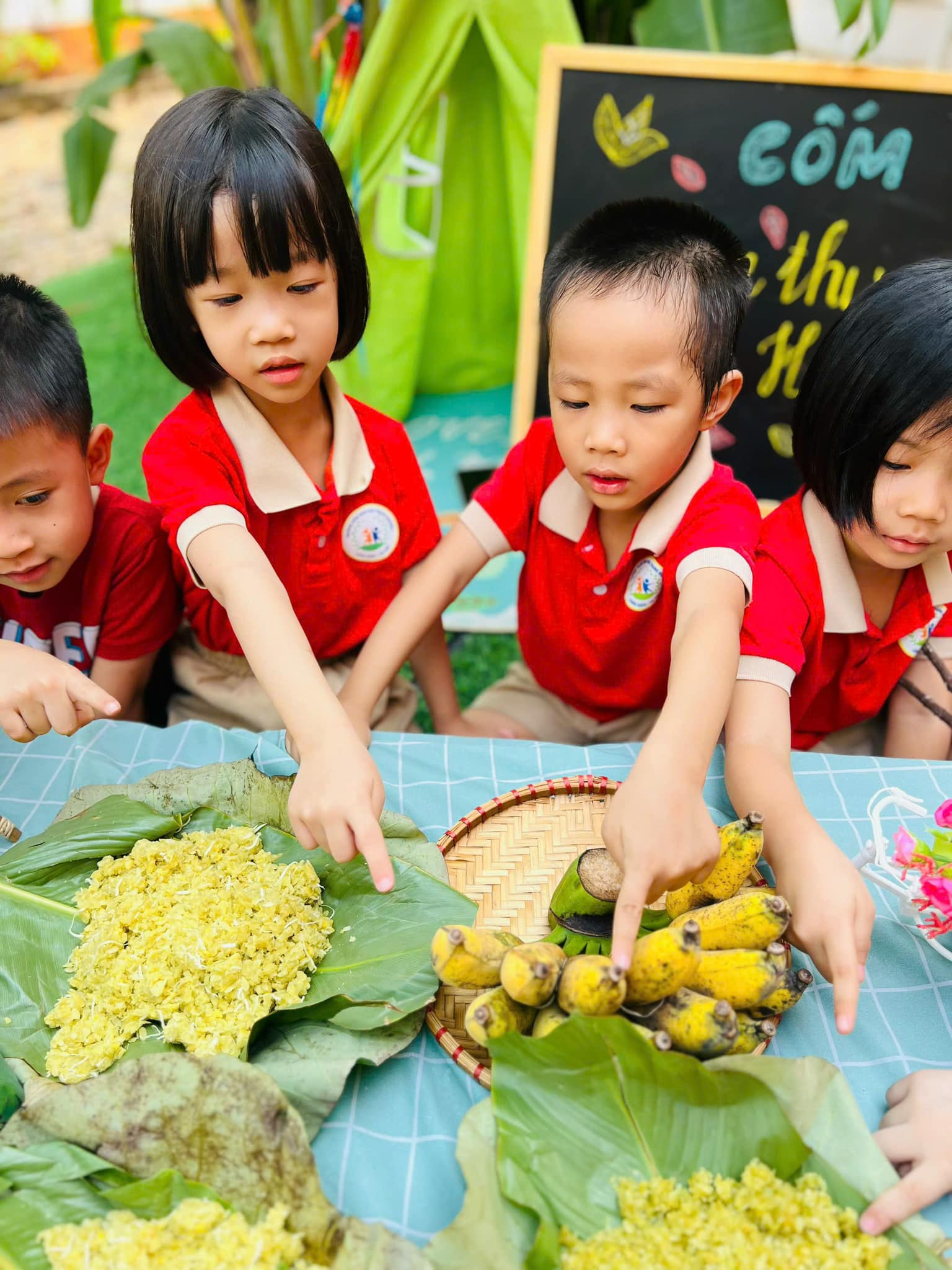 của Hà Nội. Các bé có cơ hội được tìm hiểu về quy trình làm cốm, được tận tay chạm, ngửi để cảm nhận mùi thơm của những hạt cốm dẻo, thơm phức,thưởng thức các món ngon cùng với hạt cốm thơm dẻo