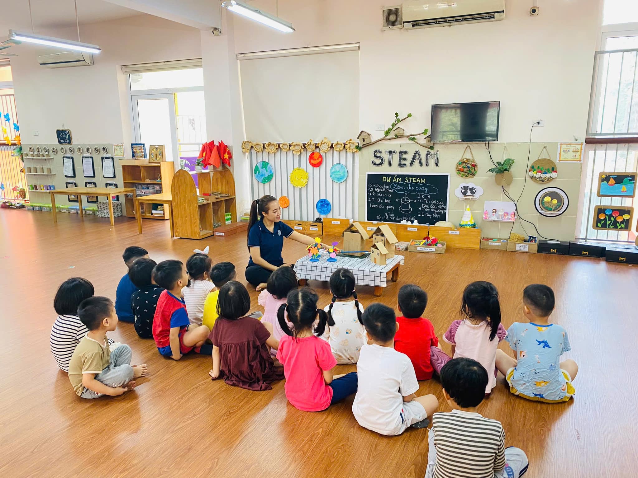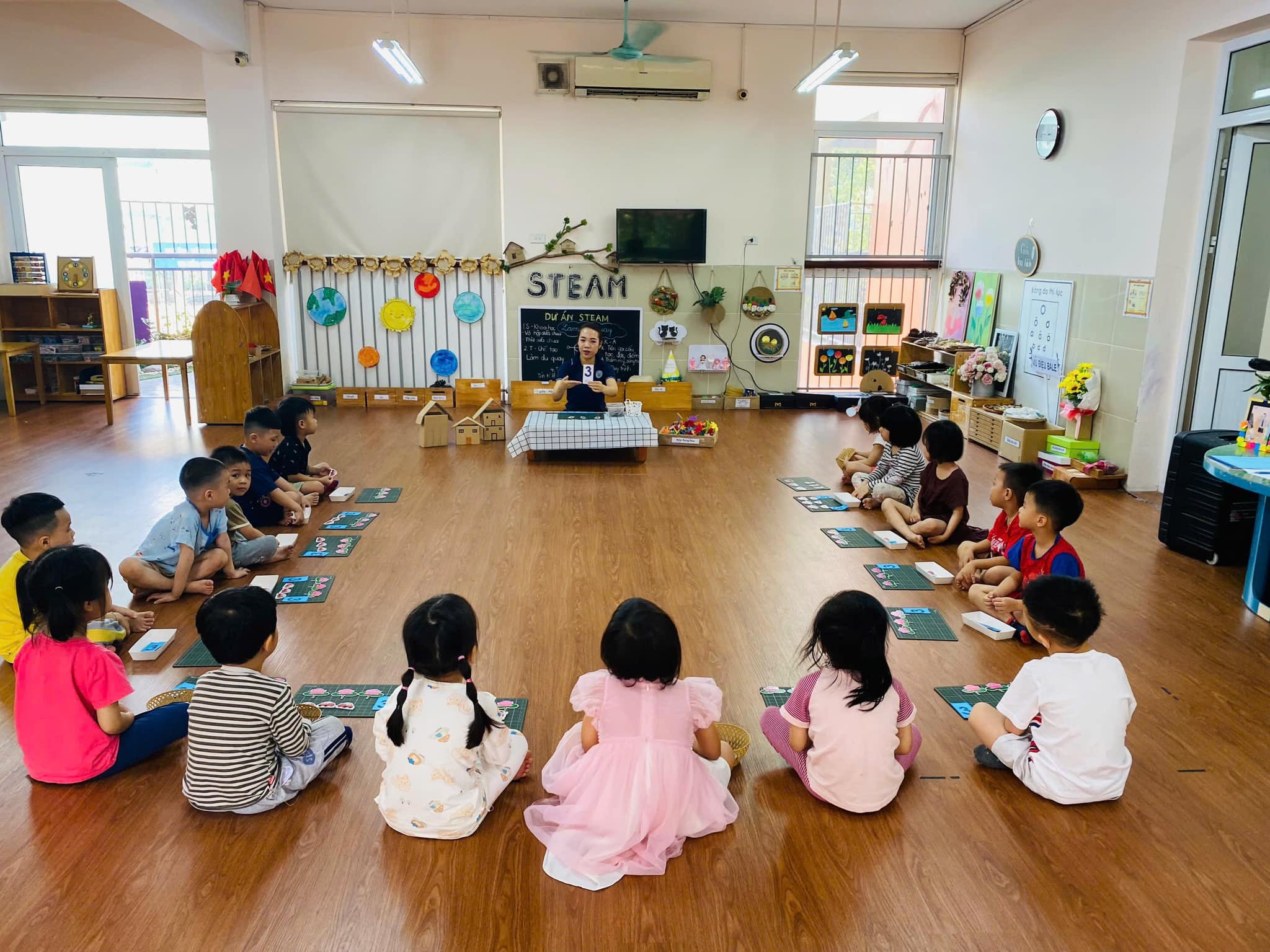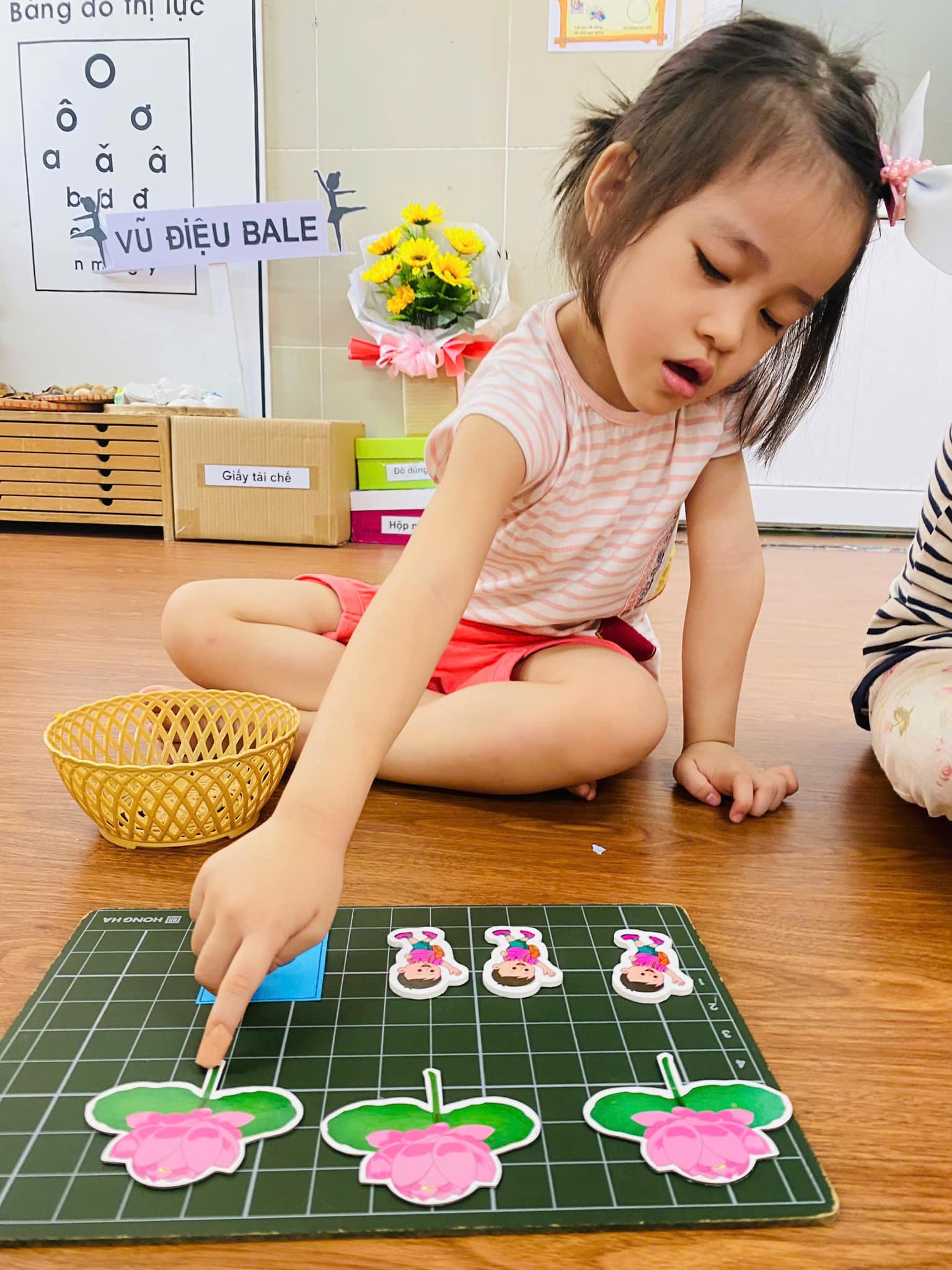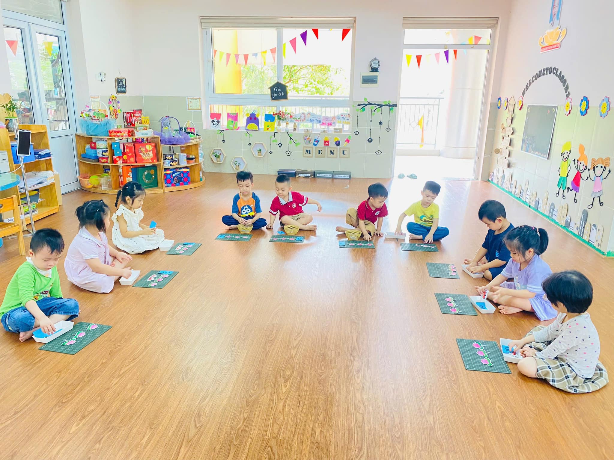 Trong giờ học, trẻ được cô giáo hướng dẫn cụ thể, chính xác về cách xếp, nhận biết, đếm,….