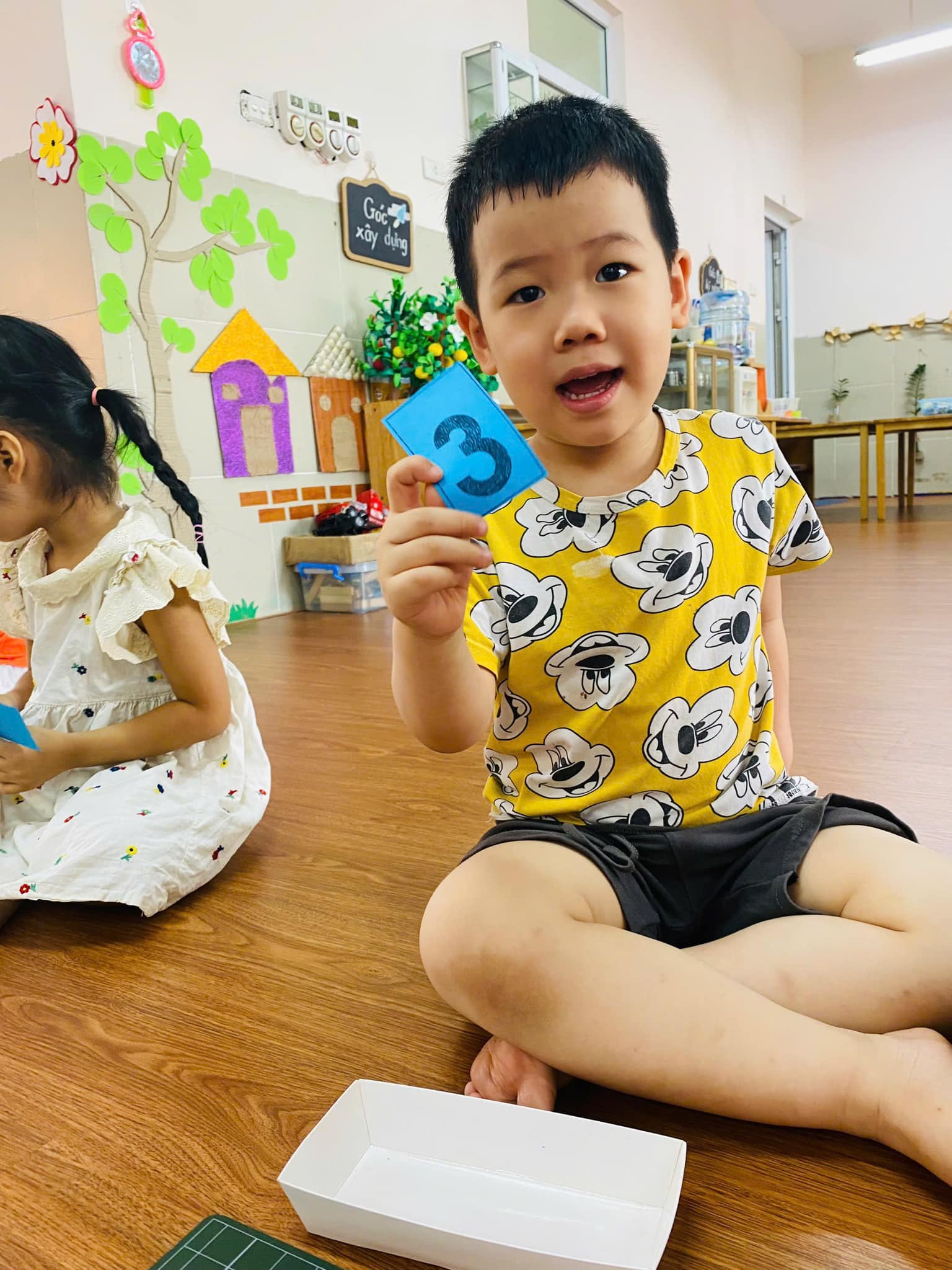 Dưới đây là một số hình ảnh của trẻ trong giờ học Toán “Nhận biết chữ số 3, số lượng và số thứ tự trong phạm vi 3” của các bé lớp MGN B1