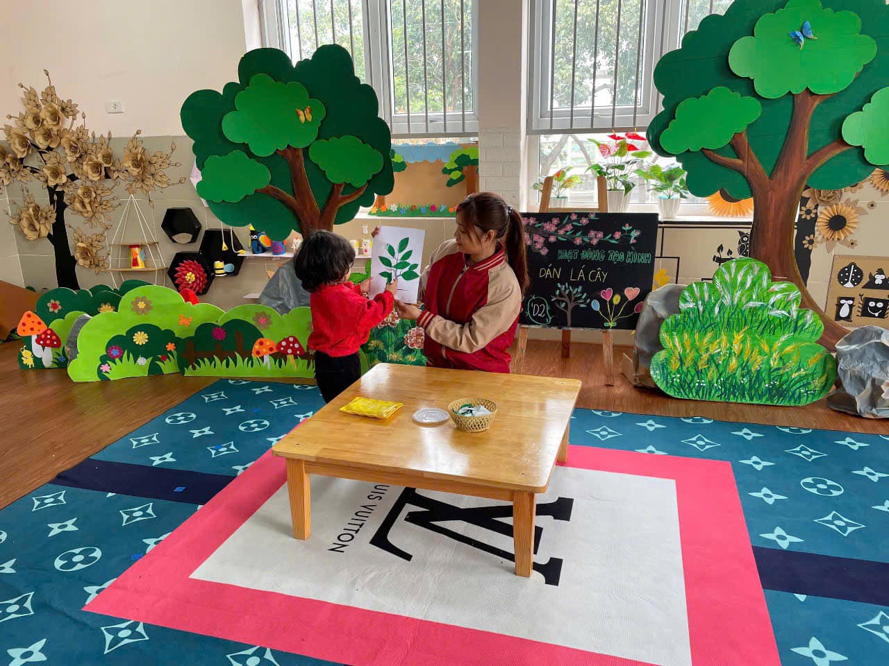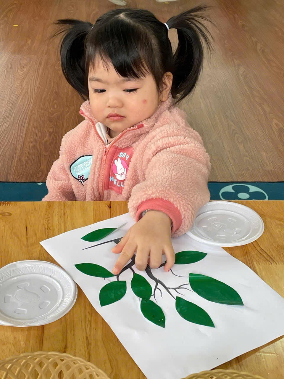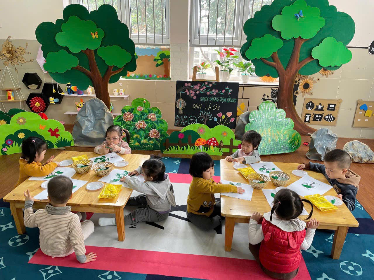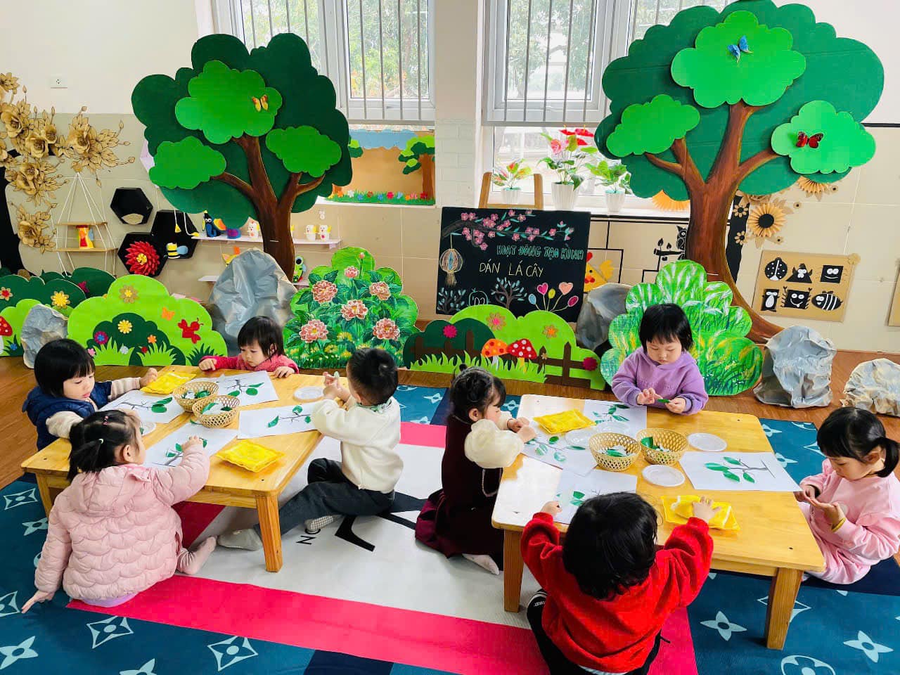 từ đó hình thành thói quen cho trẻ biết yêu quý, chăm sóc và bảo vệ cây xanh. Qua hoạt động trẻ có kỹ năng chấm hồ, phết hồ khi dán, trẻ biết cách bố cục bức tranh hài hoà, hợp lý.