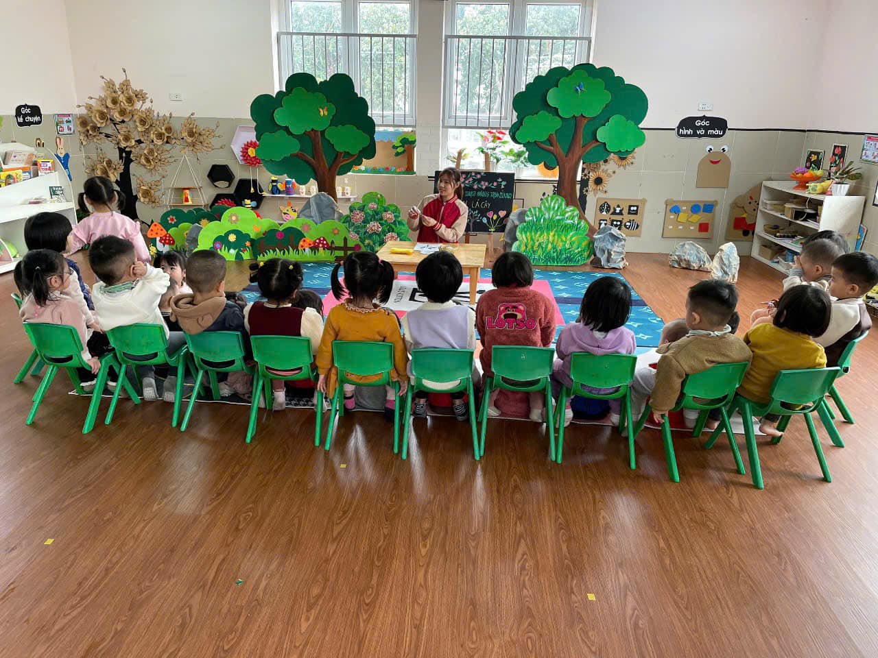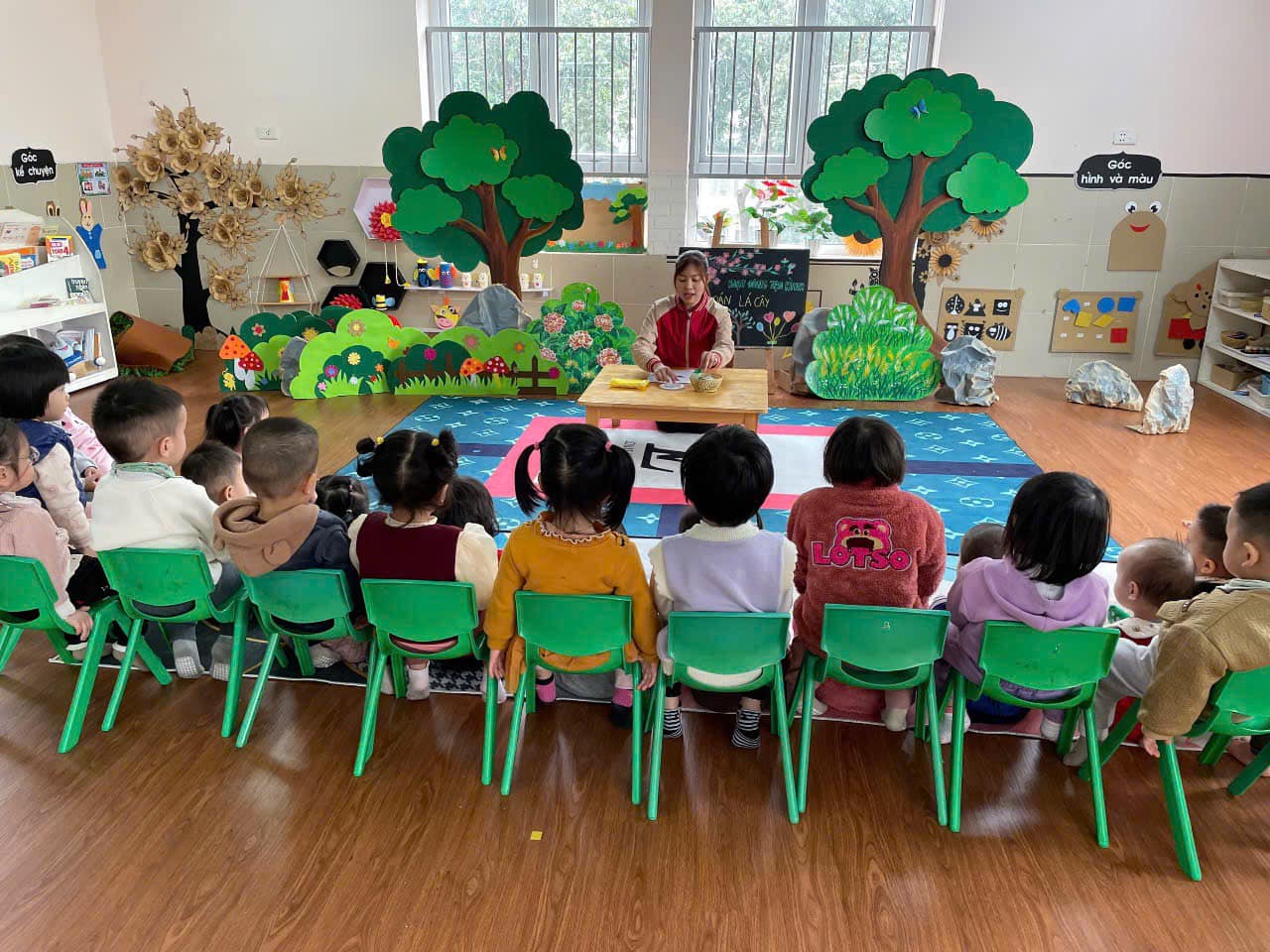 Hoạt động “ Dán lá cây” Giúp trẻ nhận biết màu sắc và hình ảnh của cây xanh những lợi ích từ cây xanh mang lại cho con người, để trẻ biết cây xanh lớn lên như thế nào,