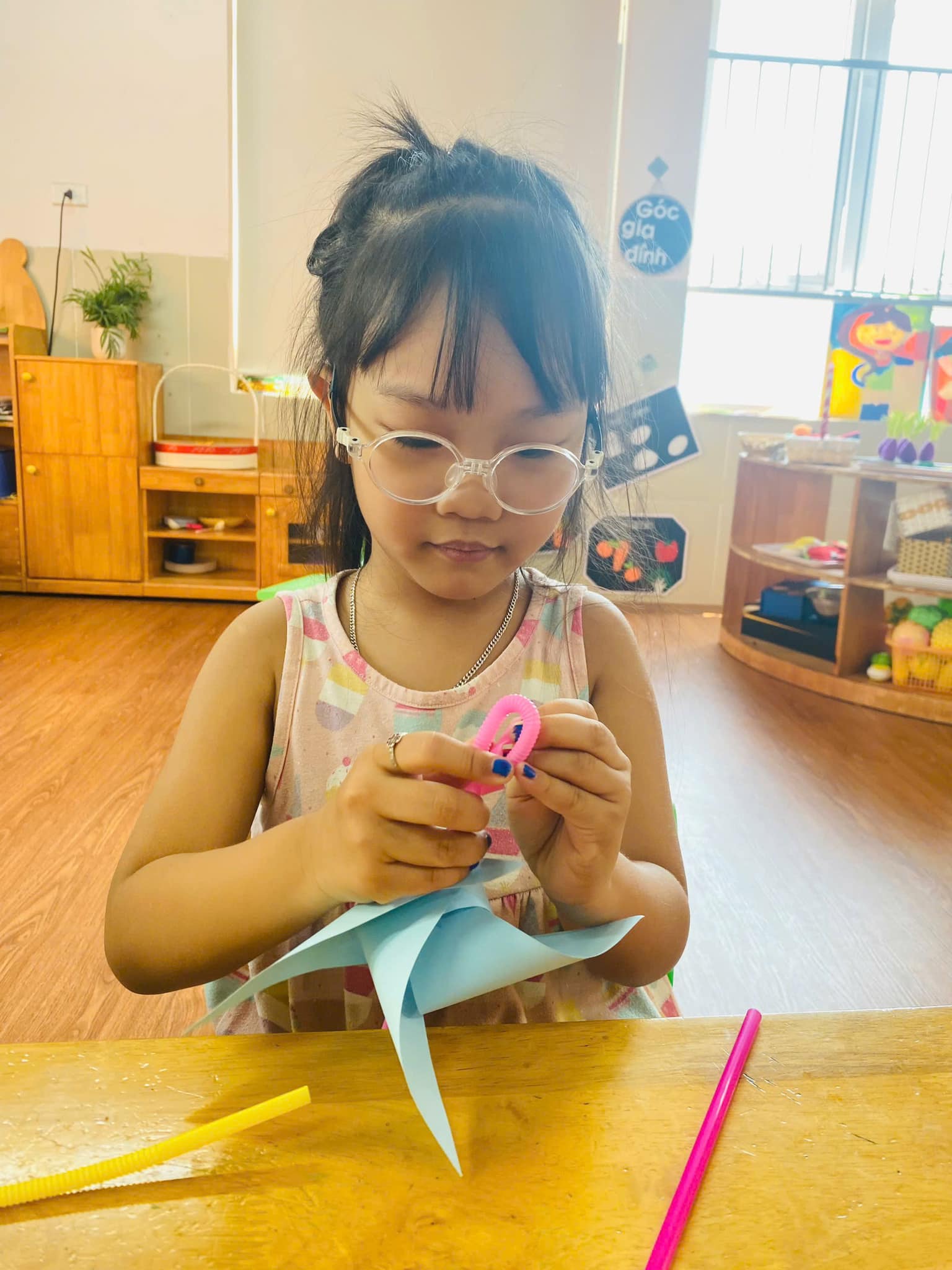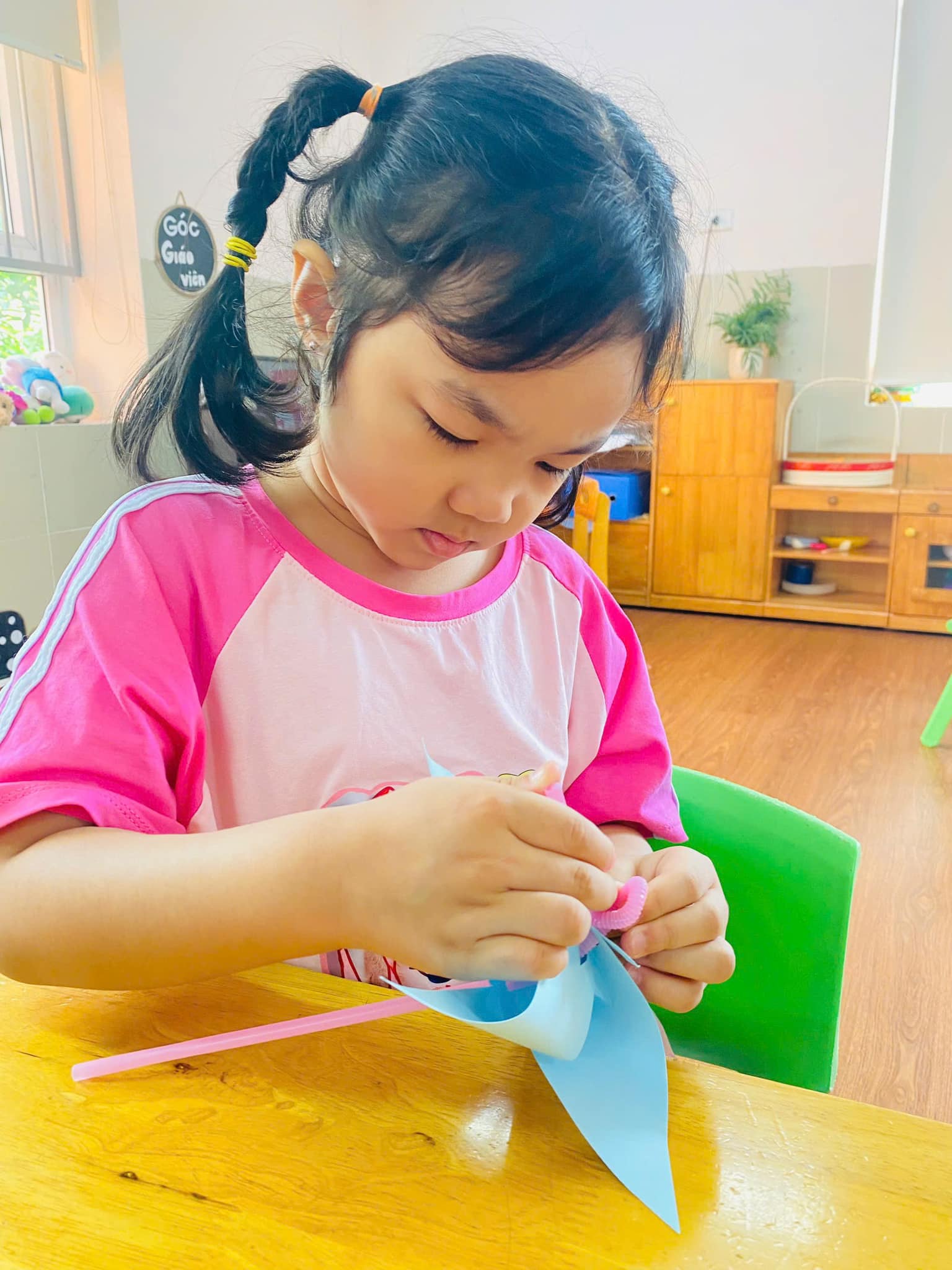 💐Hôm nay, các bé lớp mẫu giáo lớn A1 đã có một buổi học vô cùng thú vị với hoạt động: “Làm chong chóng”. Dưới sự hướng dẫn tận tình của cô giáo, các con được làm quen với các nguyên vật liệu đơn giản như: giấy màu, ống hút, keo dán và kéo an toàn.