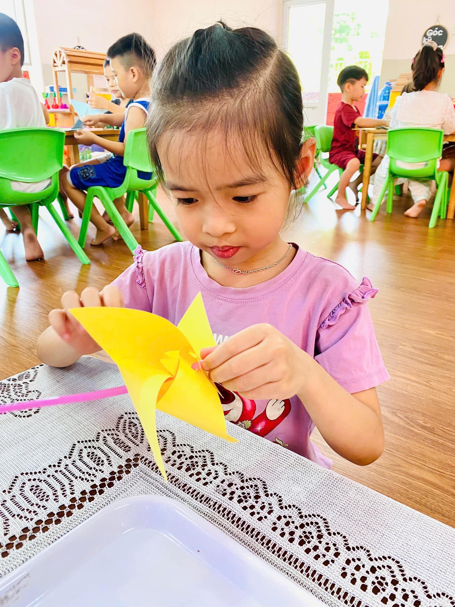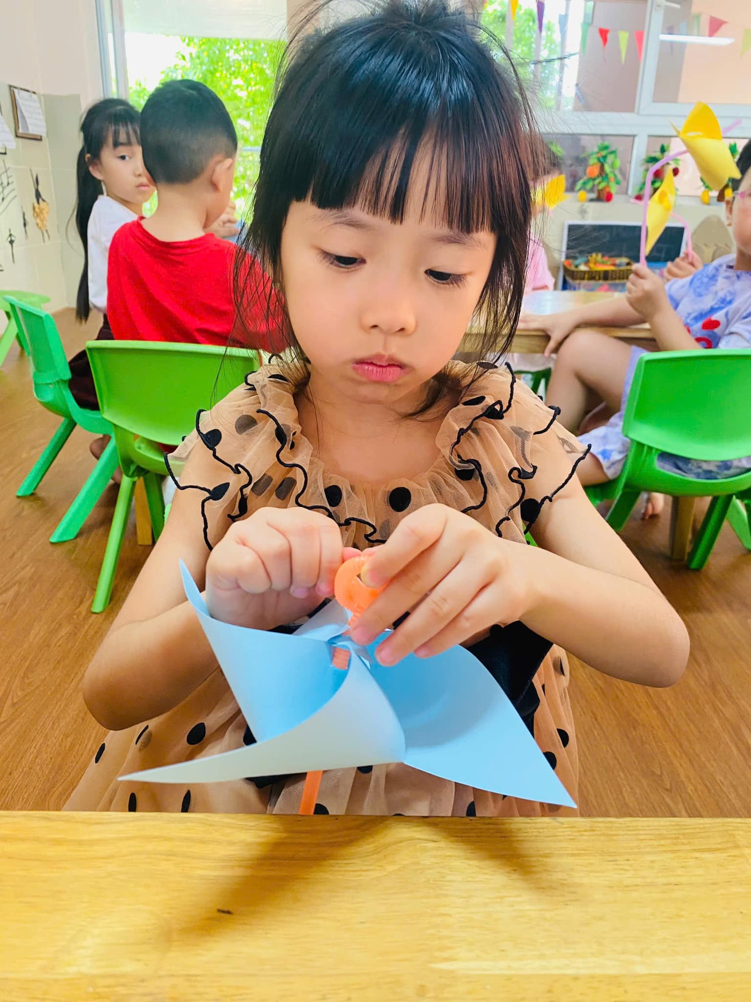 🫶Với sự khéo léo và óc sáng tạo, các bé đã tự tay cắt, gấp và trang trí những chiếc chong chóng đầy màu sắc. Bạn thì chọn giấy màu vàng, bạn thì lại thích giấy xanh như bầu trời. Những chiếc chong chóng sau khi hoàn thành được mang ra sân trường để thử sức với gió – và thật tuyệt vời khi thấy đôi mắt các bé sáng lên vì vui sướng khi chong chóng quay tít trong gió! ❤️❤️❤️