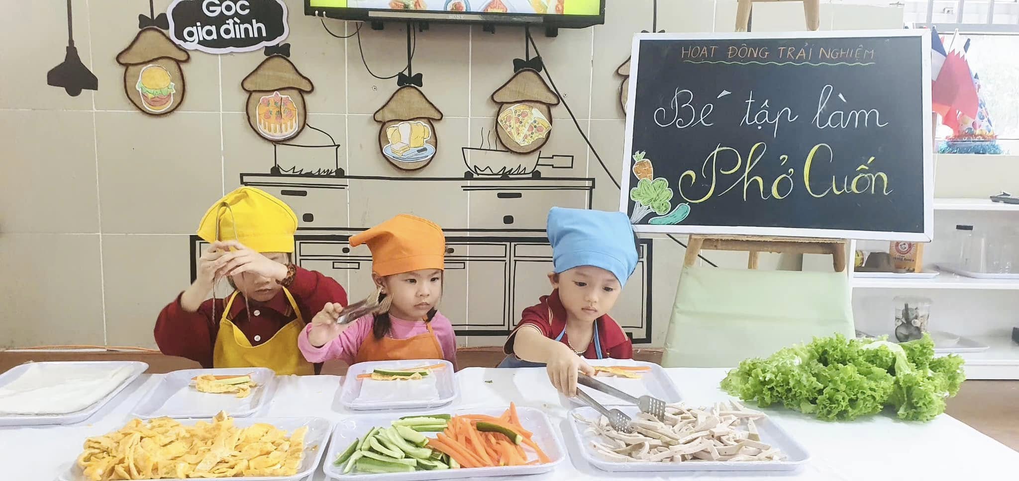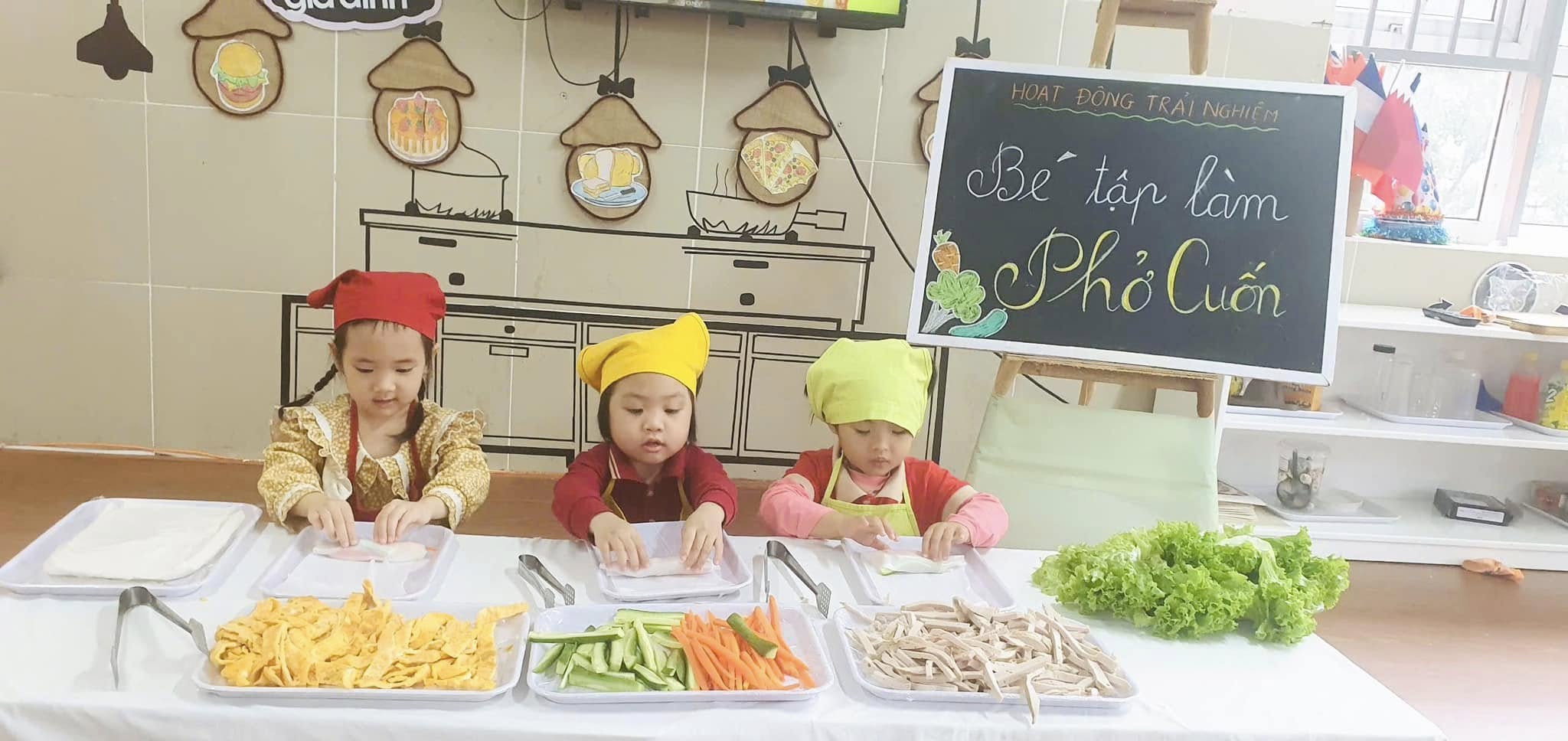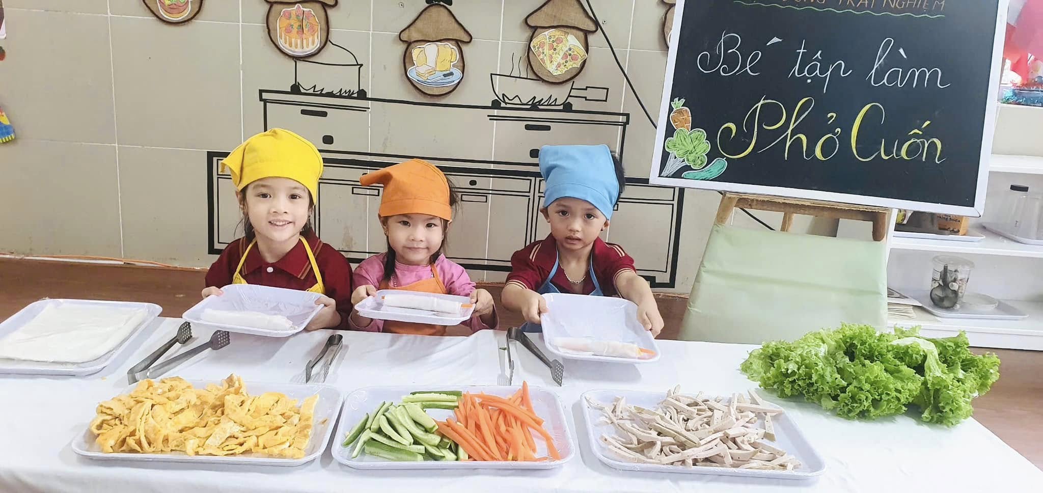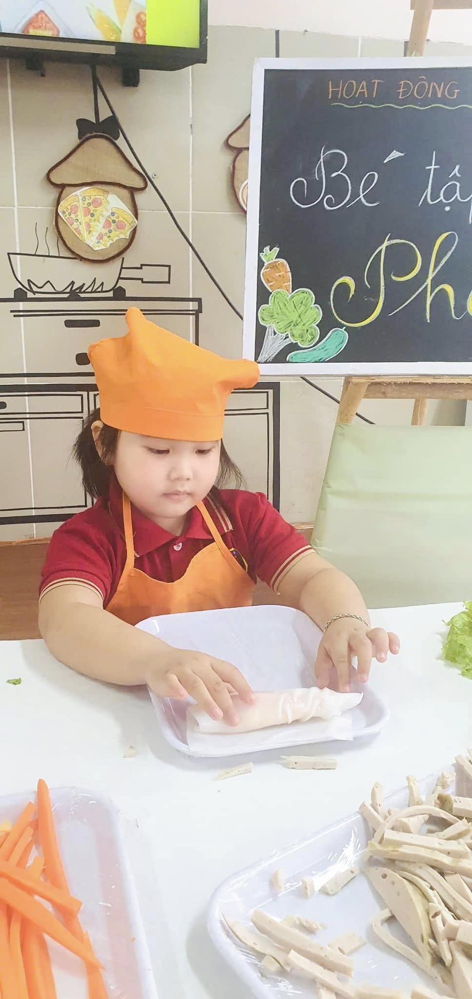 Thông qua hoạt động các bạn nhỏ được khám phá thế giới nhiều màu sắc và phong phú của các loại rau, củ, quả, trứng,giò,... được làm quen với việc “tự tay” cuốn đồ ăn khiến cho các bạn nhỏ vô cùng hào hứng và say mê.