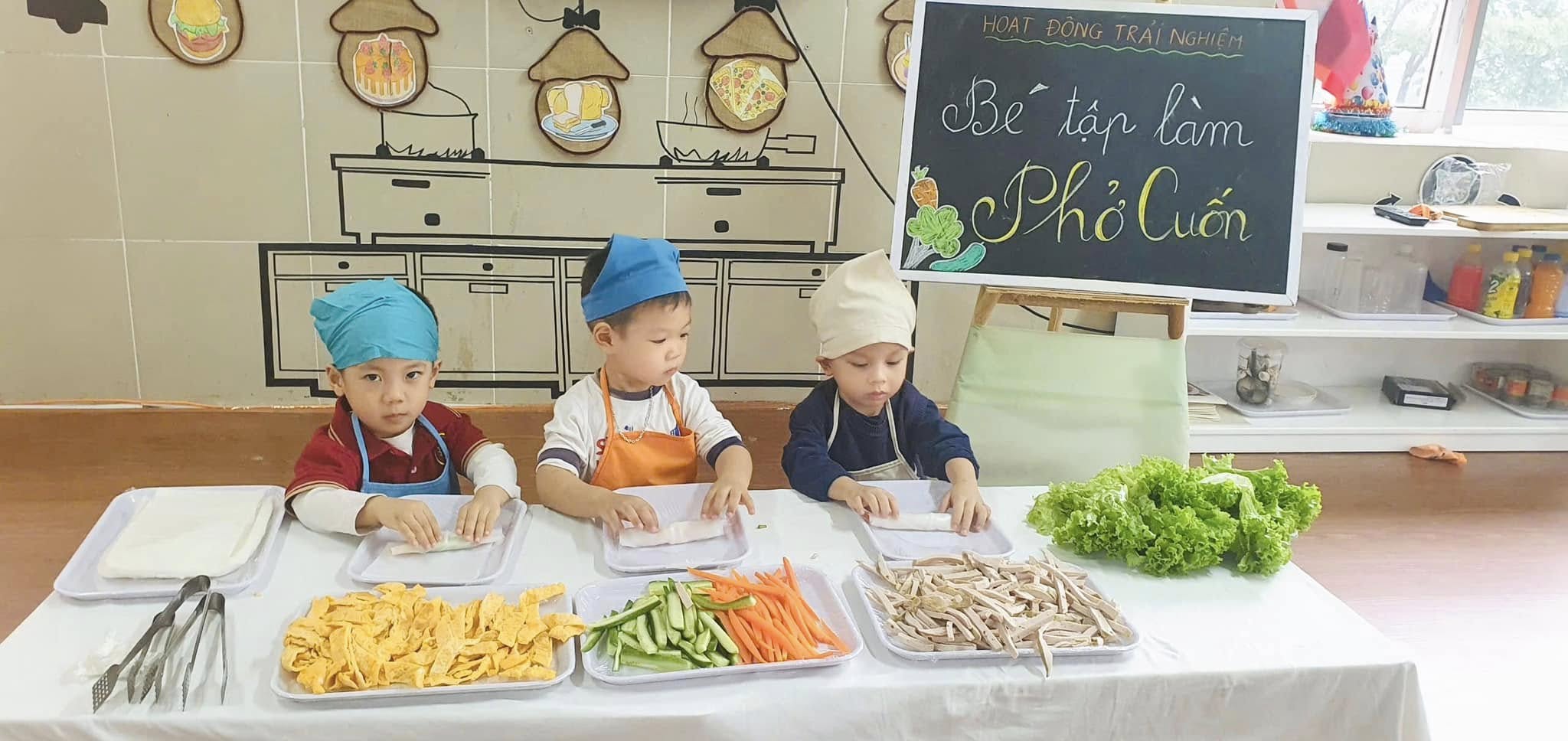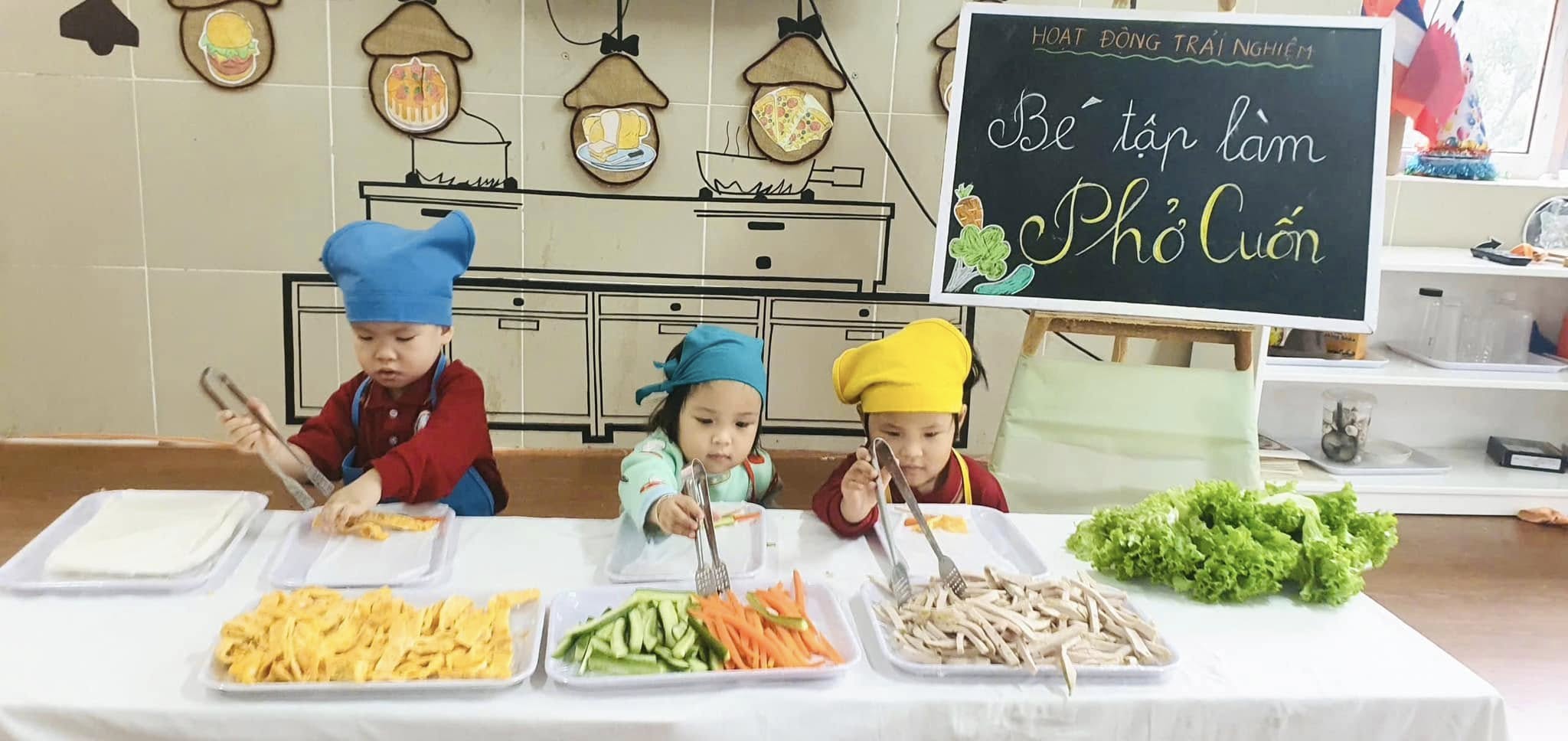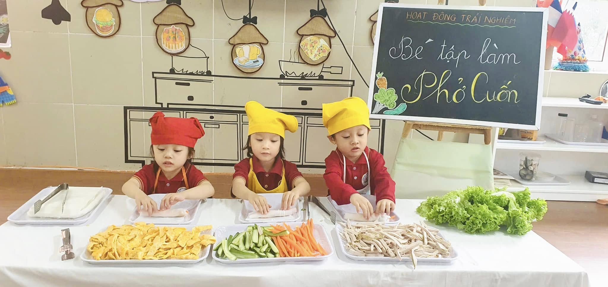 Thông qua hoạt động các bạn nhỏ được khám phá thế giới nhiều màu sắc và phong phú của các loại rau, củ, quả, trứng,giò,... được làm quen với việc “tự tay” cuốn đồ ăn khiến cho các bạn nhỏ vô cùng hào hứng và say mê.