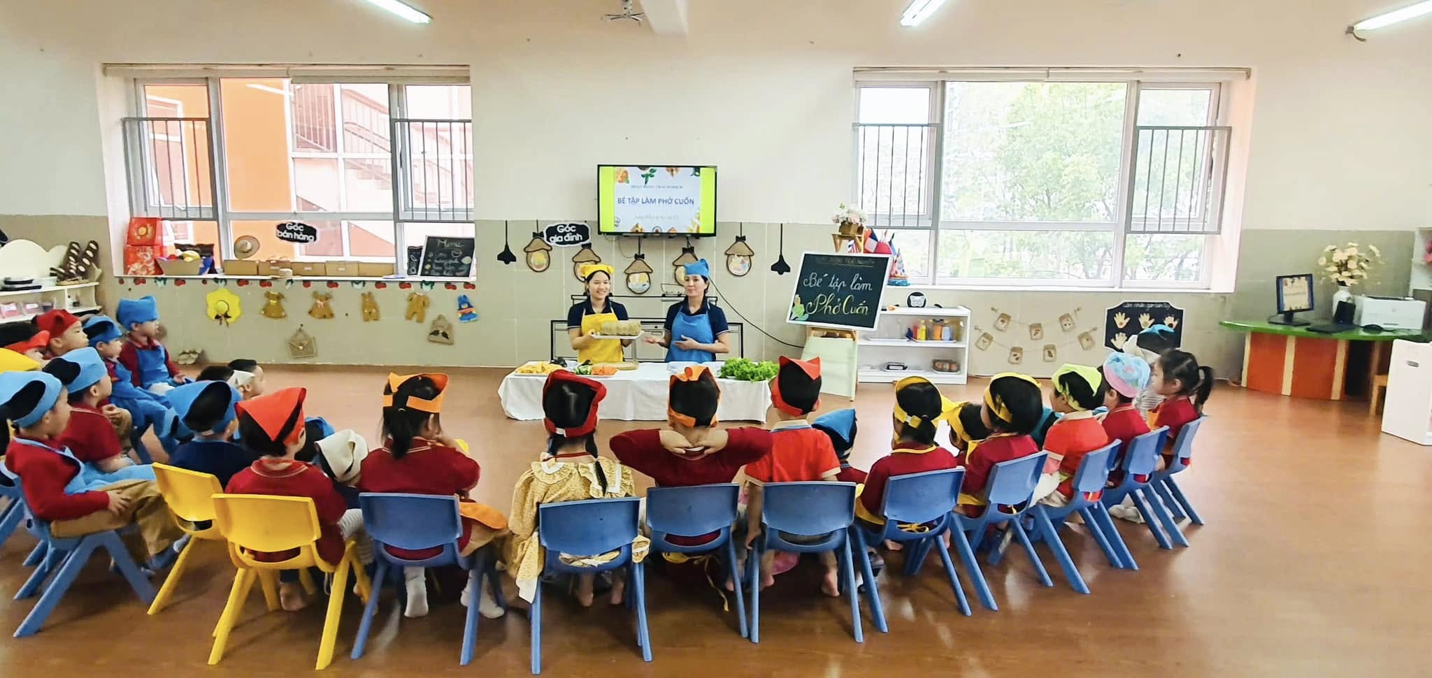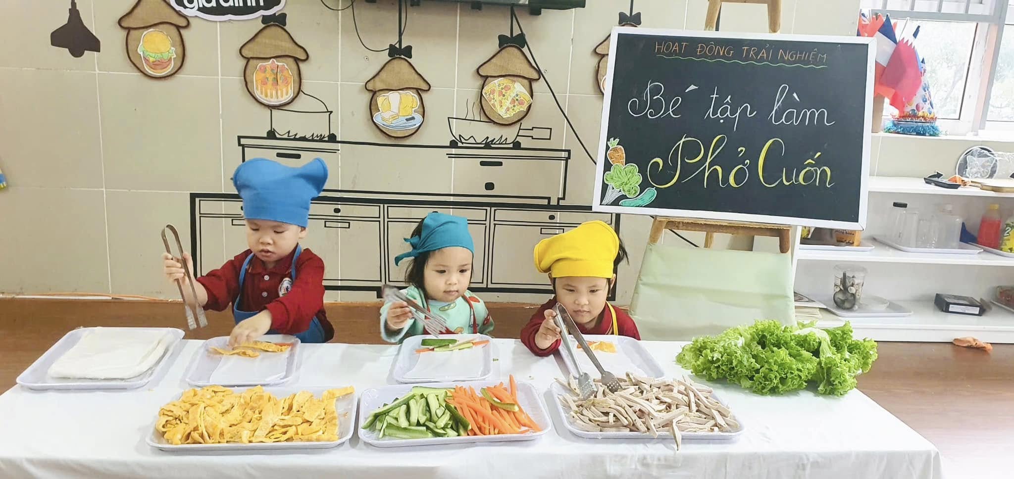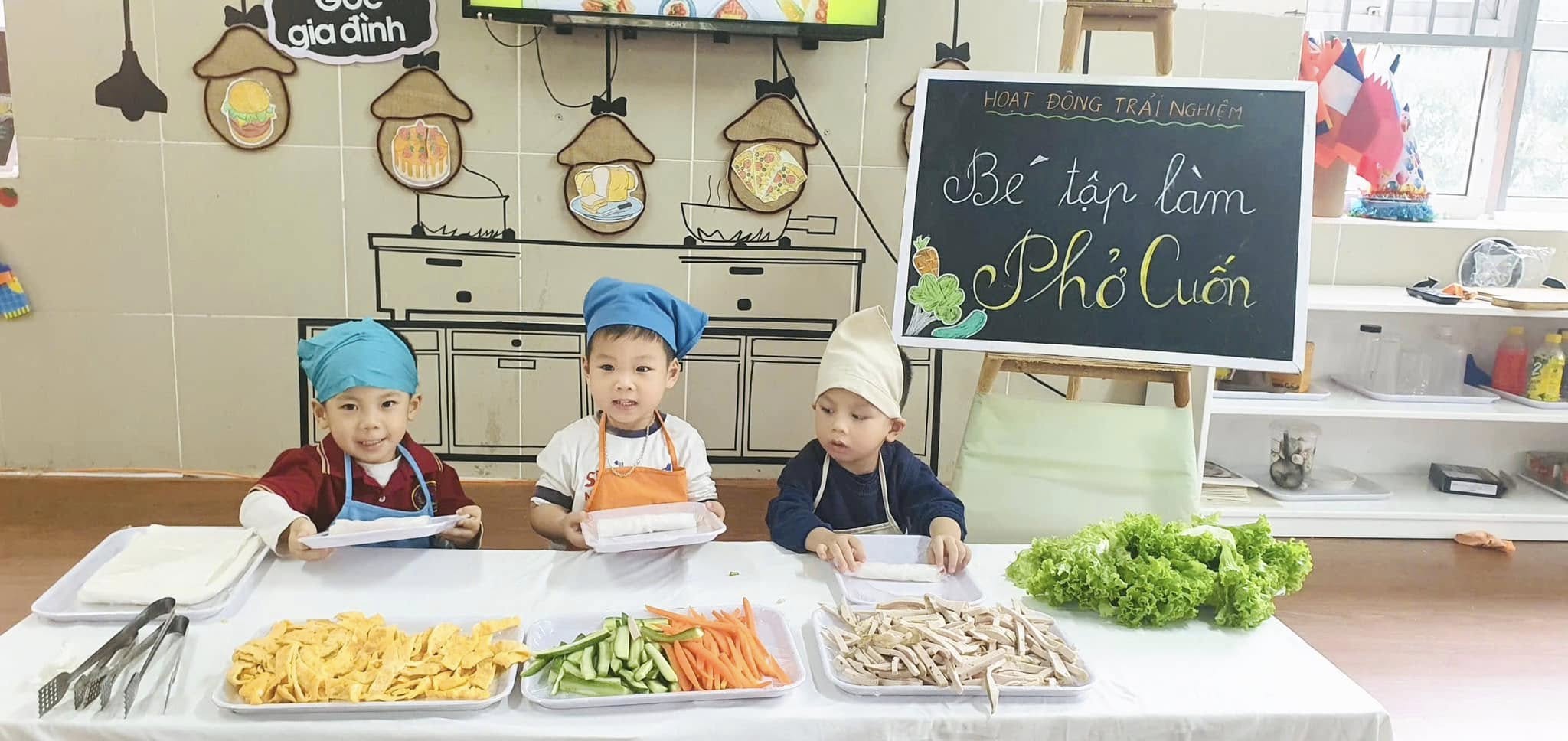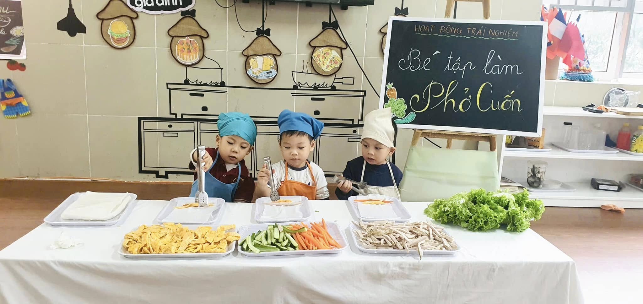 Thông qua hoạt động các bạn nhỏ được khám phá thế giới nhiều màu sắc và phong phú của các loại rau, củ, quả, trứng,giò,... được làm quen với việc “tự tay” cuốn đồ ăn khiến cho các bạn nhỏ vô cùng hào hứng và say mê.