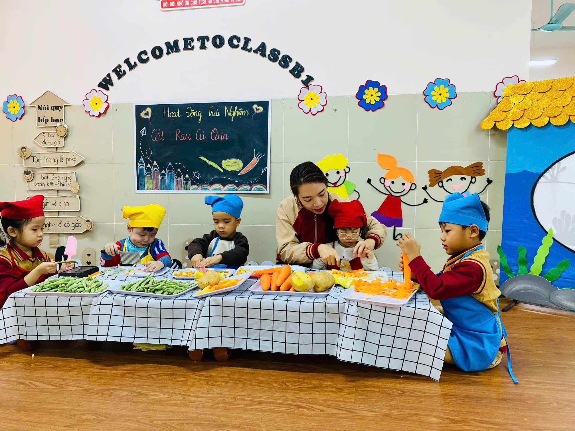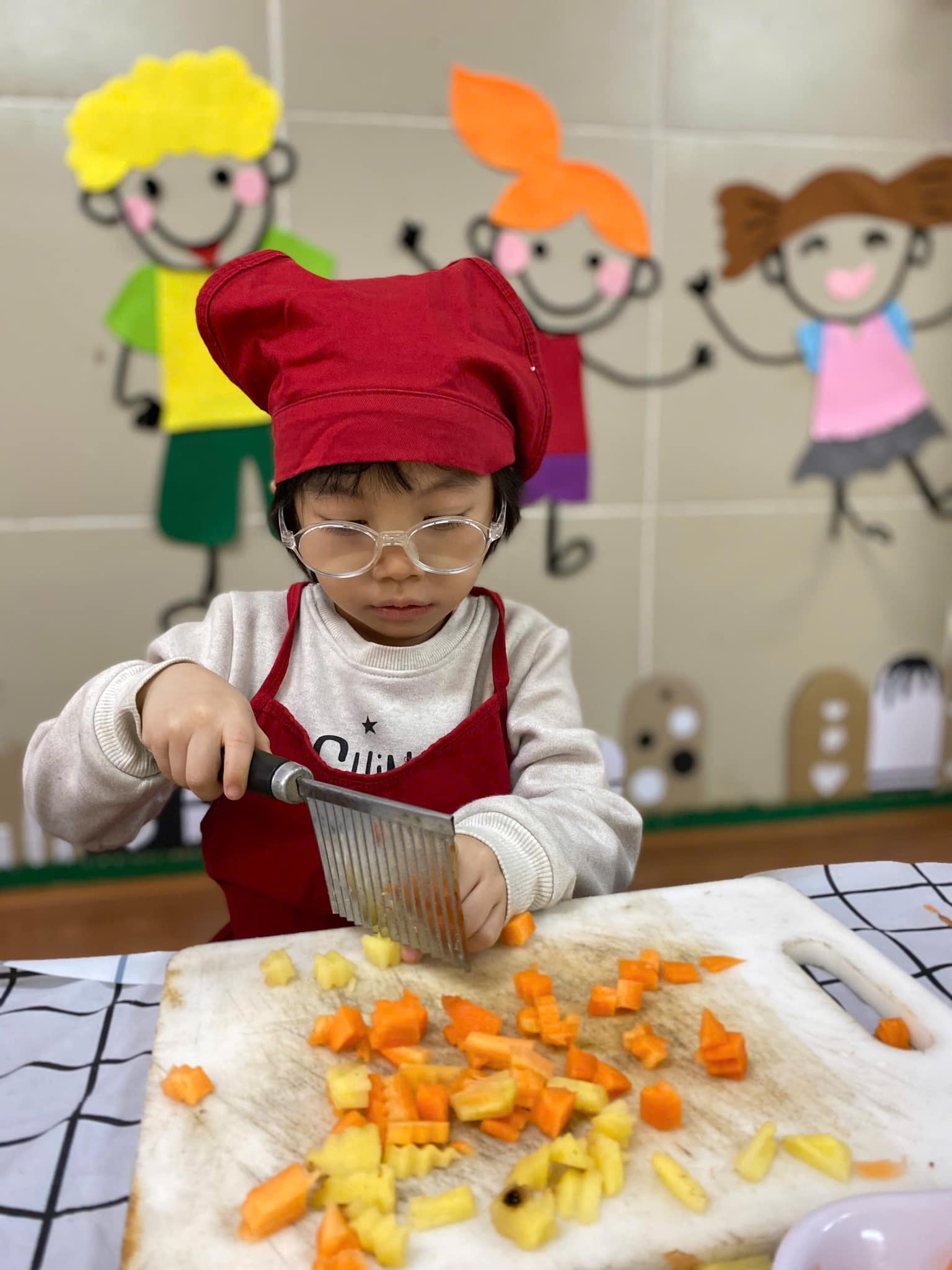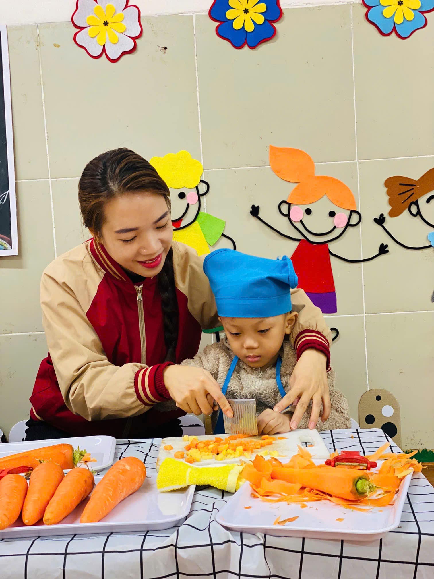 Qua buổi học các con đã có thêm kỹ năng cầm dao, nạo, sự khéo léo, cẩn thận khi cắt, nạo và đặc biệt là phát triển tình yêu đối với công việc. Các bé say sưa với hoạt động, bạn nào cũng chăm chú thực hành. Chỉ 1 lát thôi là đã nạo và cắt xong cà rốt, củ cải.